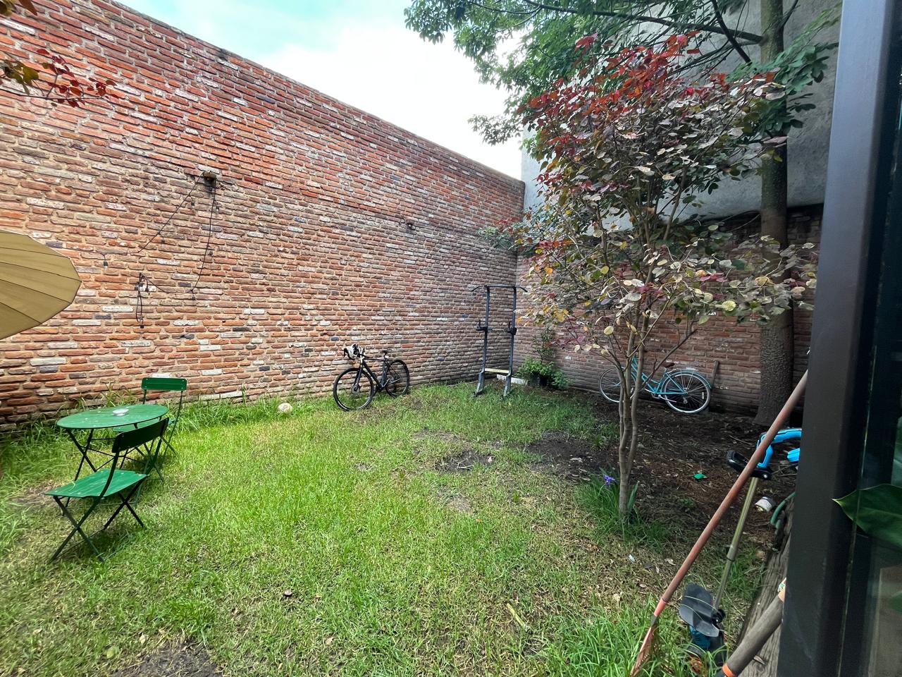 Desde aquí, accedes a un jardín de 50m2, perfecto para un desayuno al aire libre o para relajarte después de un día agitado. Además, cuenta con un medio baño de visitas, ideal para la comodidad y la de tus invitados.