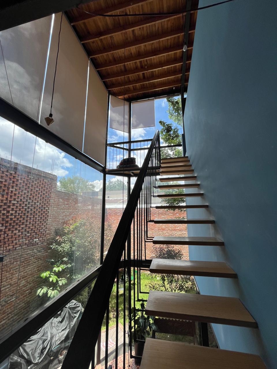 - Elegante escalera flotante que conecta los niveles con estilo.